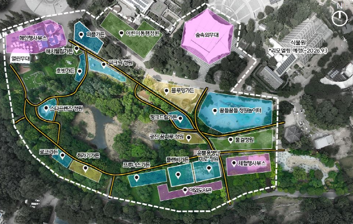 아이들이 직접 참여하여 정원을 가꾸고 체험할 수 있는 공간이 마련됩니다. 대표적으로 '꿈틀꿈틀 정원놀이터'는 GS건설, 초록우산어린이재단과 협력하여 조성된 어린이 맞춤형 정원으로, 놀이와 학습을 동시에 즐길 수 있습니다.