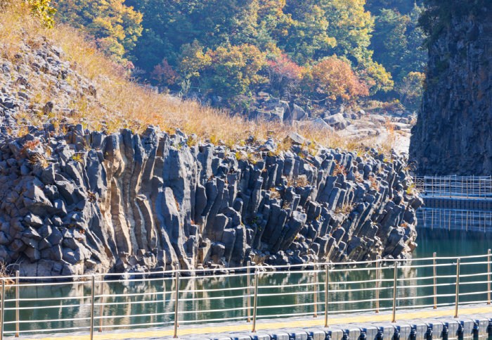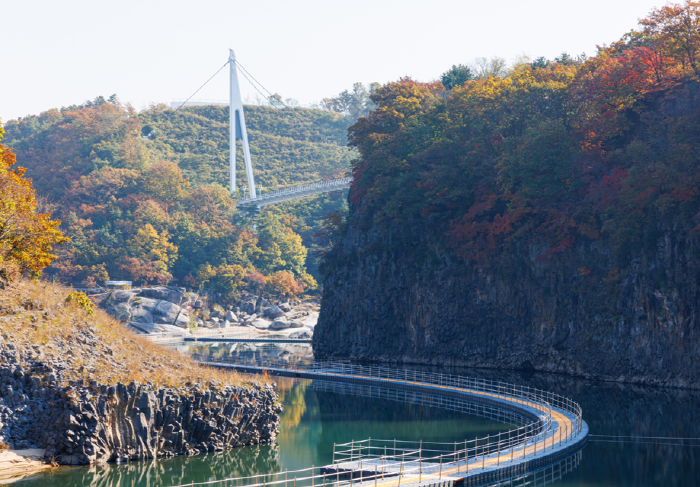 강원도 철원군에 위치한 한탄강 물윗길은 유네스코 세계지질공원으로 인증된 한탄강의 주상절리를 물 위에서 직접 감상할 수 있는 명품 트레킹 <2022년 한국 관광의 별>에 선정된 바 있습니다. 한탄강 물길을 걸으며 화산활동으로 형성된 주상절리, 현무암 협곡 등 빼어난 자연경관과 주변 역사문화공간을 탐방할 수 있는 명품 트레킹 코스로 겨울철 얼음 트레킹코스로도 유명합니다.