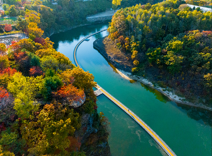 물 위에 떠있는 부교는 3.25km이고, 강변을 따라 걸을 수 있는 육로는 5.21km로 총 8.5km입니다.