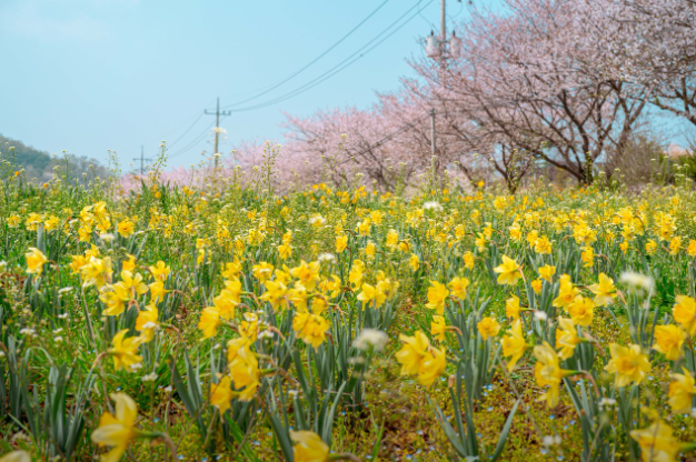 수선화와 벚꽃의 조화: 매년 4월 초, 마을 곳곳에 노란 수선화와 분홍 벚꽃이 만개하여 환상적인 풍경을 자아냅니다. 특히 두 꽃이 동시에 피는 시기는 약 5일 정도로, 이 시기에 방문하면 최고의 경관을 감상할 수 있습니다.